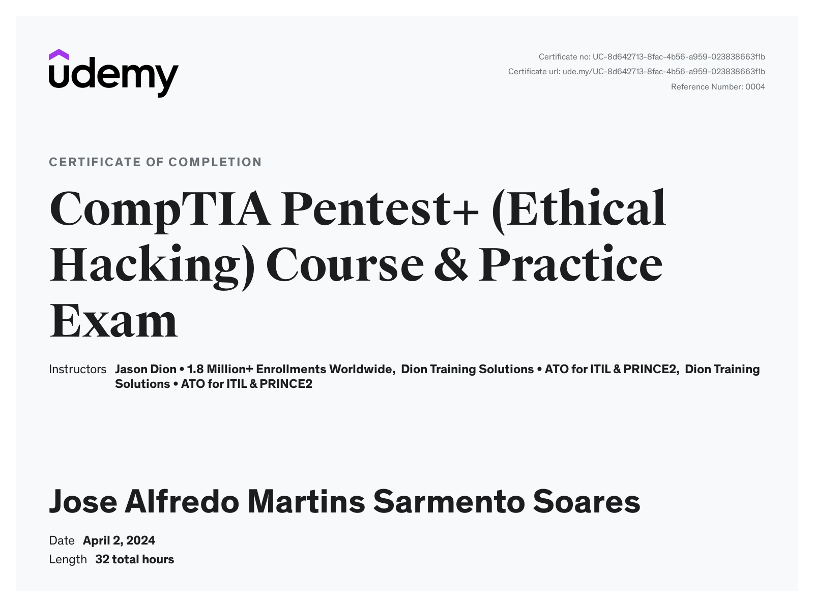 - CompTIA Pentest + (Ethical Hacking) Course & Pratice Exame for 2024