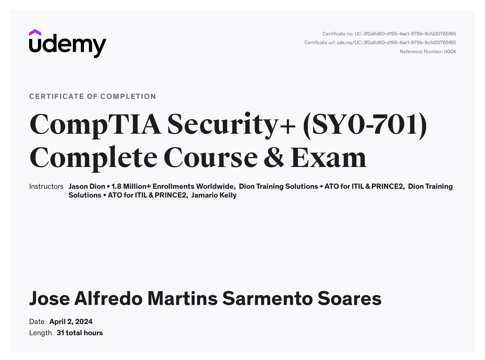- CompTIA Security + (SY0-701) Complete Course & Pratice Exame for 2024